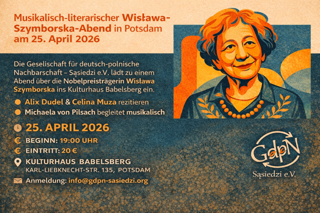 25 kwietnia 2026 roku w Domu Kultury Babelsberg odbędzie się wieczór muzyczno-literacki, podczas którego będzie można na nowo odkryć świat polskiej laureatki Nagrody Nobla, Wisławy Szymborskiej. Jej wiersze już dawno stały się [...]